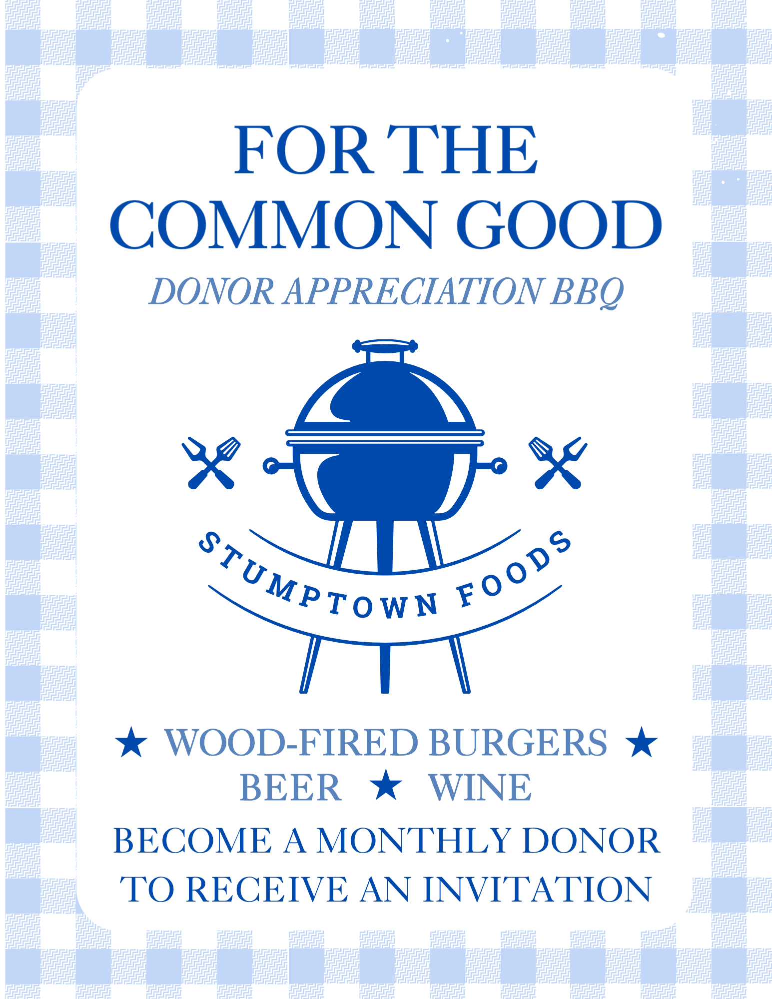 If you would like to join For The Common Good and get your invitation to the BBQ, you can sign up to become a monthly donor at: